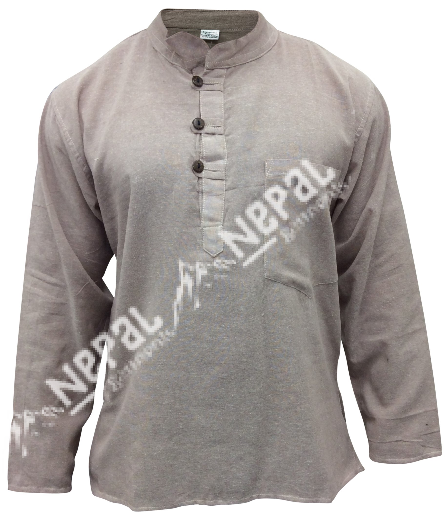 This light weight cotton shirt is perfect clothing for casual use. The classic style with three handmade wooden buttons necklines and short style collar with a pocket on the chest and the right side give the shirt unique look.