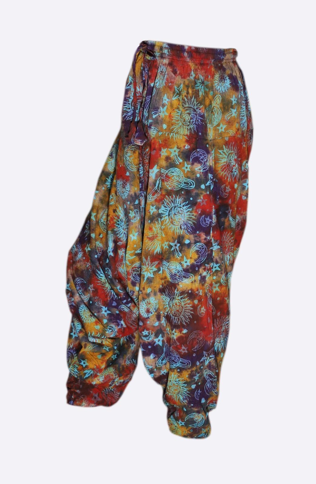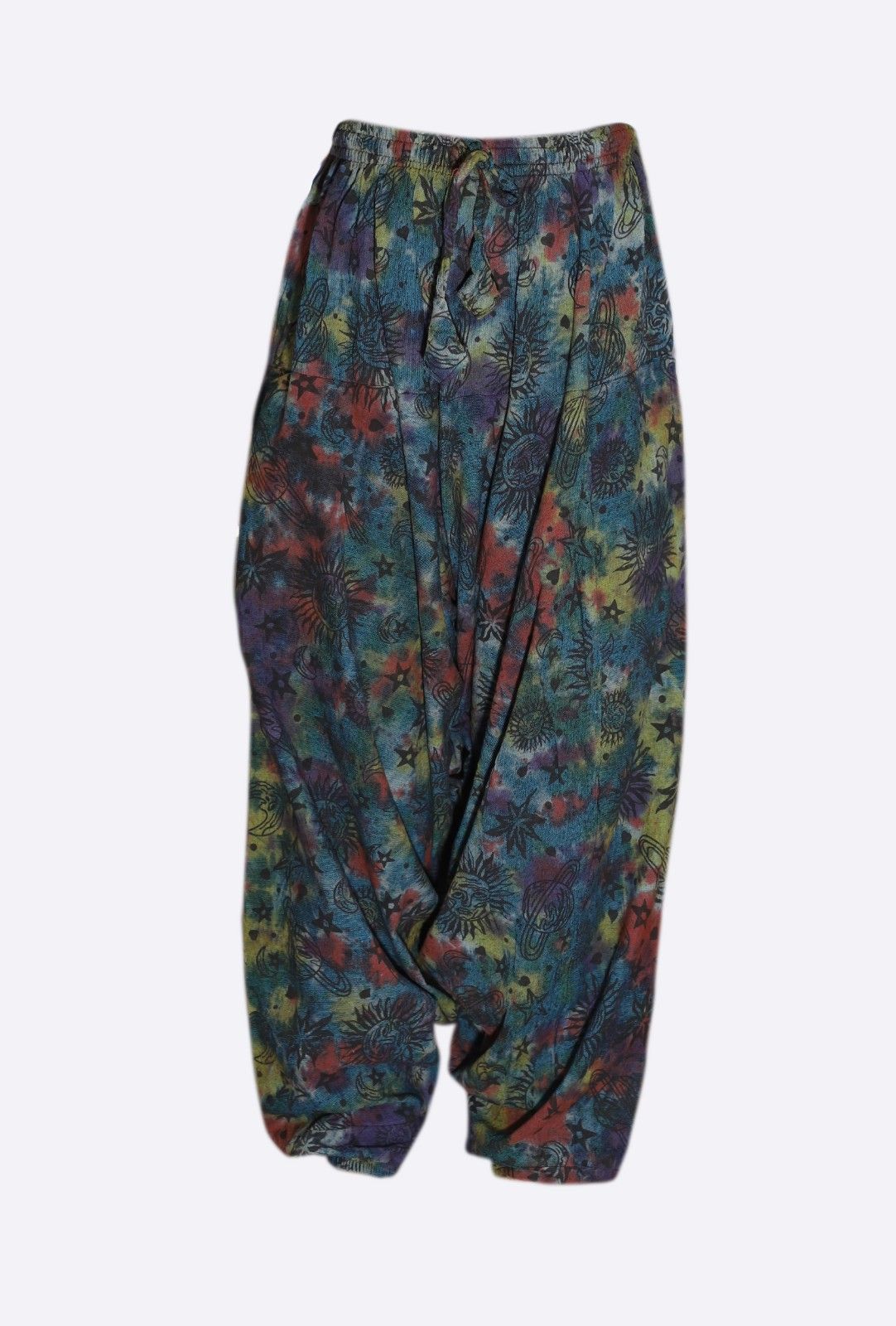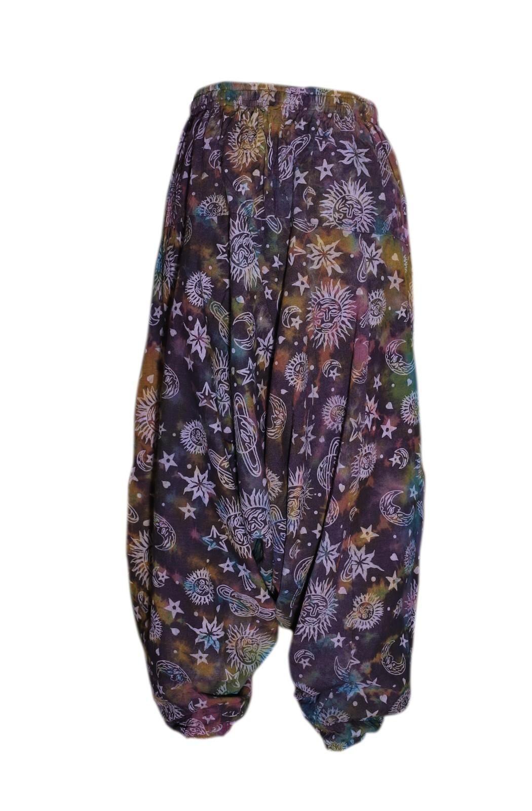 Bring a playful cosmic twist to your wardrobe with these tie-dye harem pants. Crafted from lightweight 100% cotton, they are soft, breathable, and perfect for all-day comfort.