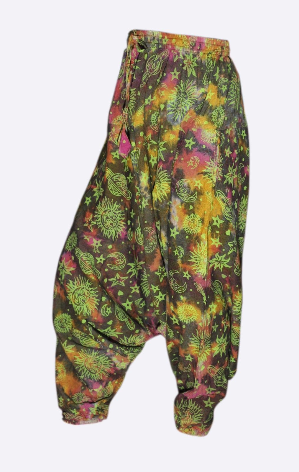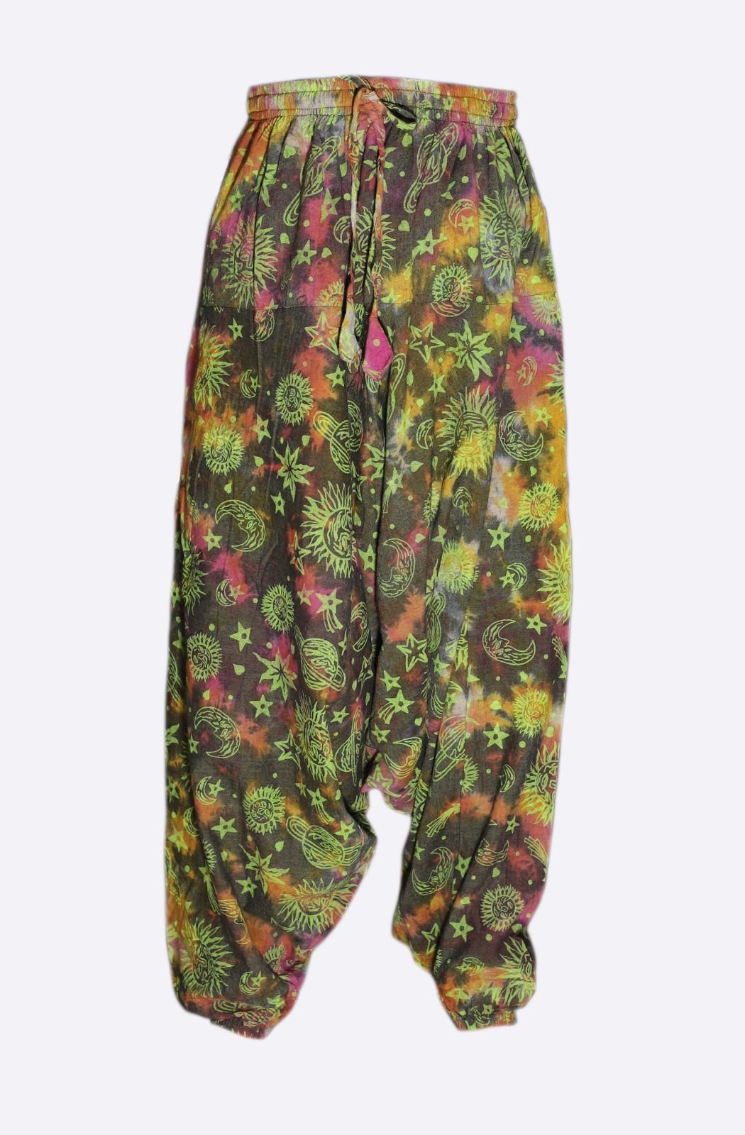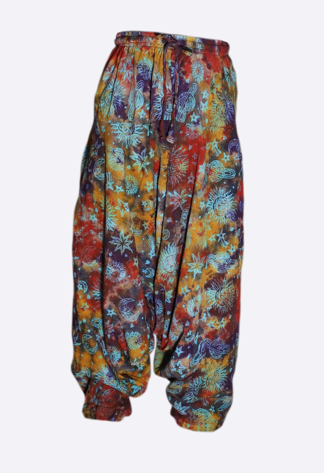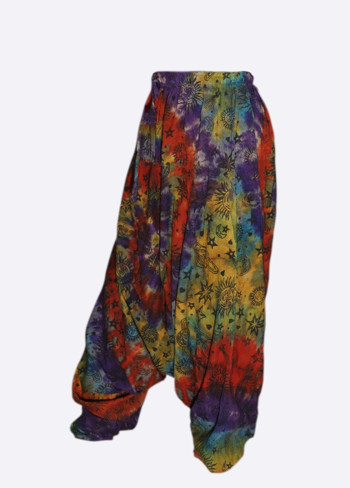 Bring a playful cosmic twist to your wardrobe with these tie-dye harem pants. Crafted from lightweight 100% cotton, they are soft, breathable, and perfect for all-day comfort.